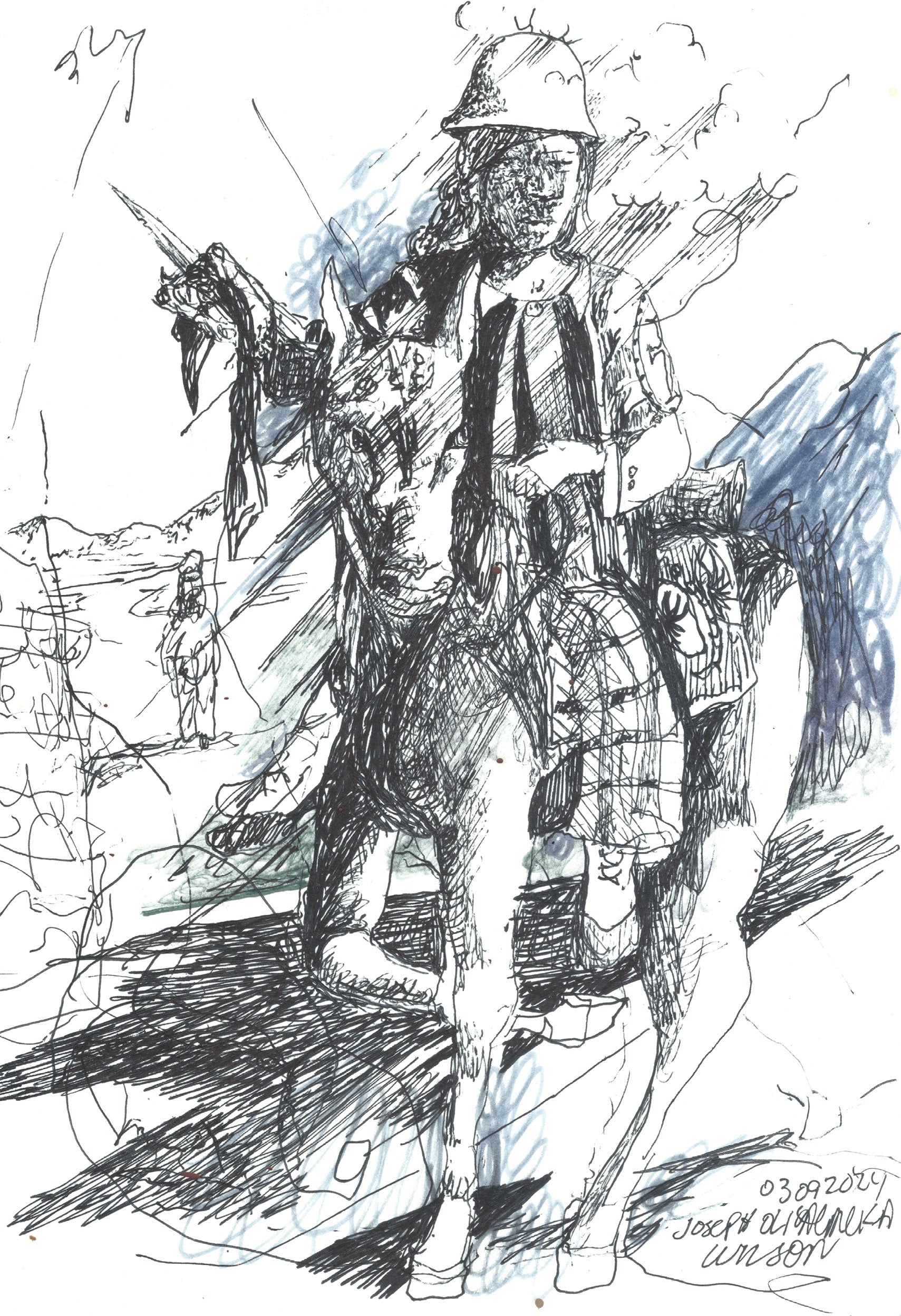 Pen and colored pencil on canvas paper
